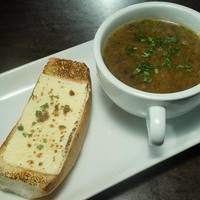smoked beef brisket, garlic bread, parmesan cheese and homemade caesar dressing