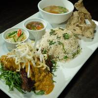 with 'nasi ulam', assam sauce, lemon and percik sauce