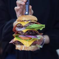 Lamb patty, lettuce, onion ring, gherkin, and cheese (with fries and coleslaw)