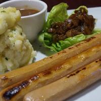 Jumbo Sausage, relish, mustard, beef sauce, salsa and chips